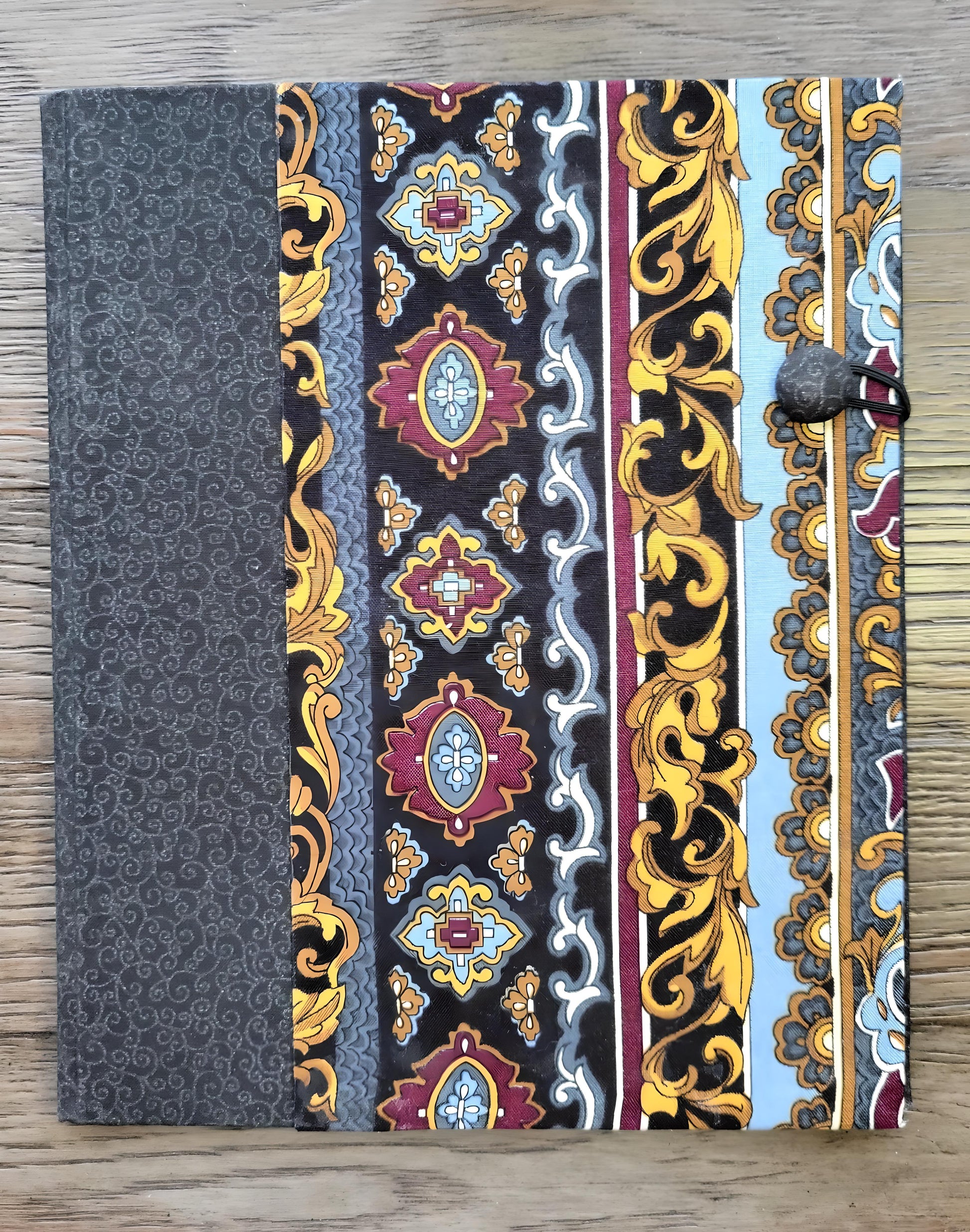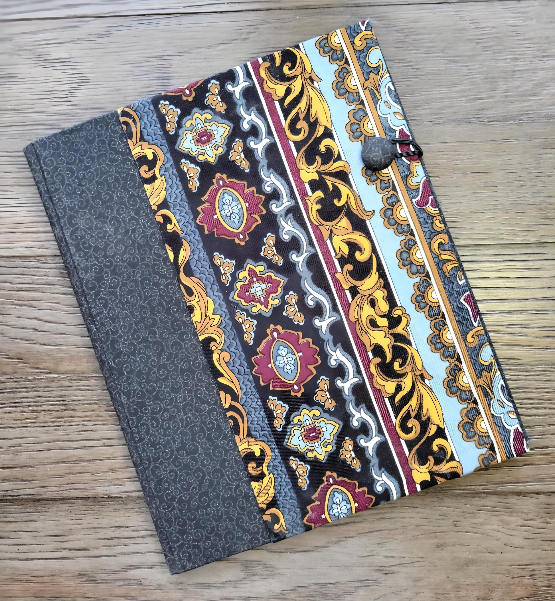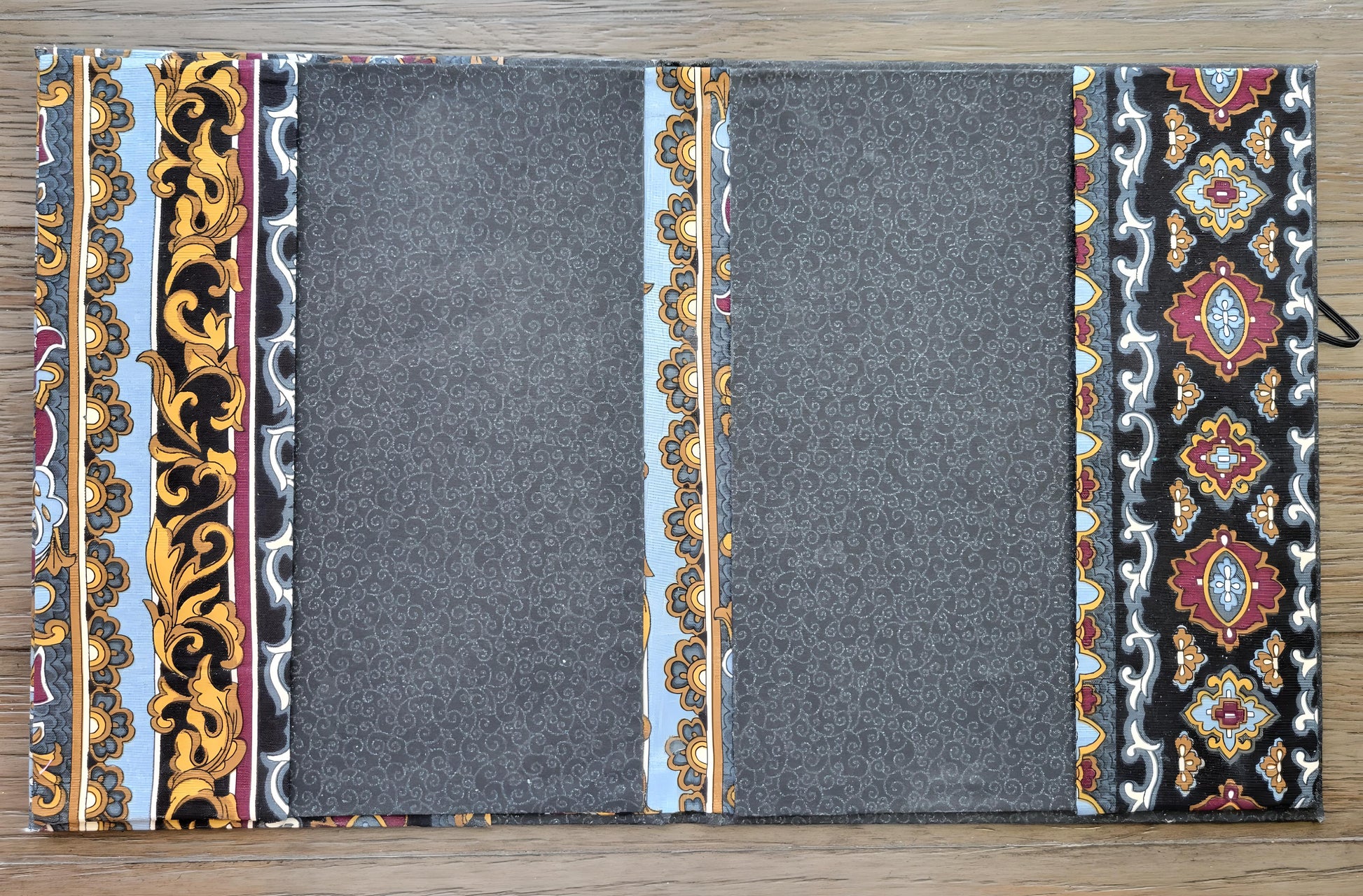 Fabric Covered Hardcover Notebook Composition Book Cover - Dark Gray, Red, Blue and Gold