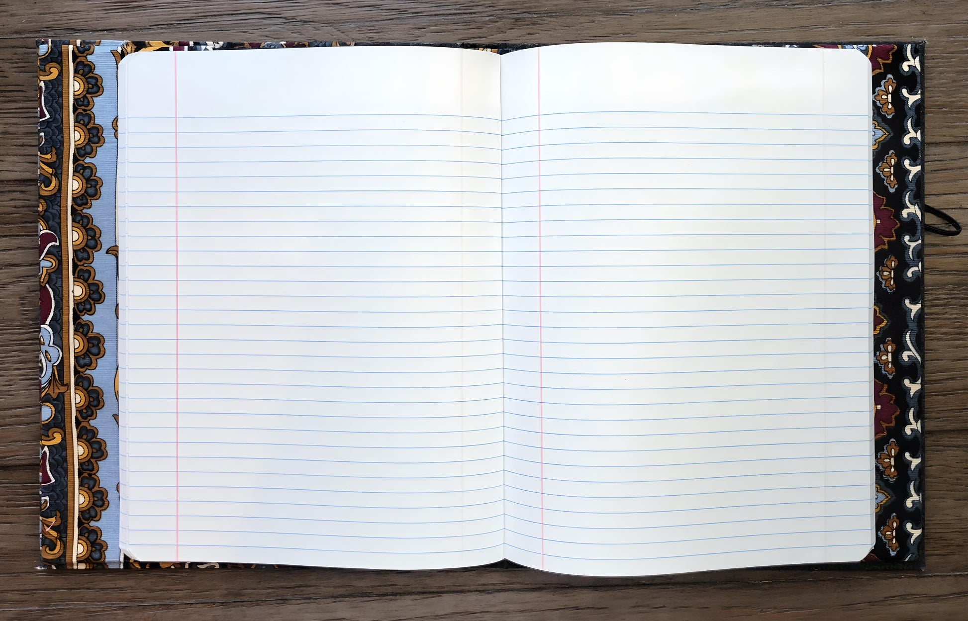 Elevate your writing experience with our elegant fabric-covered notebook cover. The sturdy hardcover construction makes it reusable over and over again. This versatile cover can be used for school notebooks, as a daily journal cover, to hold literature, assembly, convention or workshop notes, or to hold your sketch book or ideas book. This design features a timeless and sophisticated paisley pattern, making it not only stylish but also a perfect gift for any occasion. Make it a part of your daily routine for a touch of luxury. BONUS: Your first composition book is included!