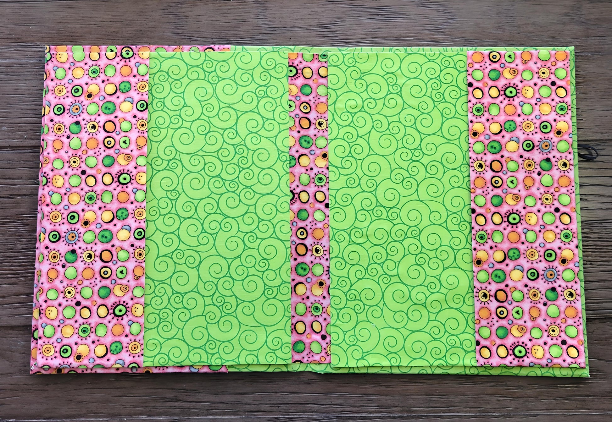 Elevate your writing experience with our elegant fabric-covered notebook cover. The sturdy hardcover construction makes it reusable over and over again. This versatile cover can be used for school notebooks, as a daily journal cover, to hold literature, assembly, convention or workshop notes, or to hold your sketch book or ideas book. This design features a playful and colorful green, pink and yellow pattern, making it not only stylish but also a perfect gift for younger people. Make it a part of your daily routine for a touch of luxury. BONUS: Your first composition book is included!